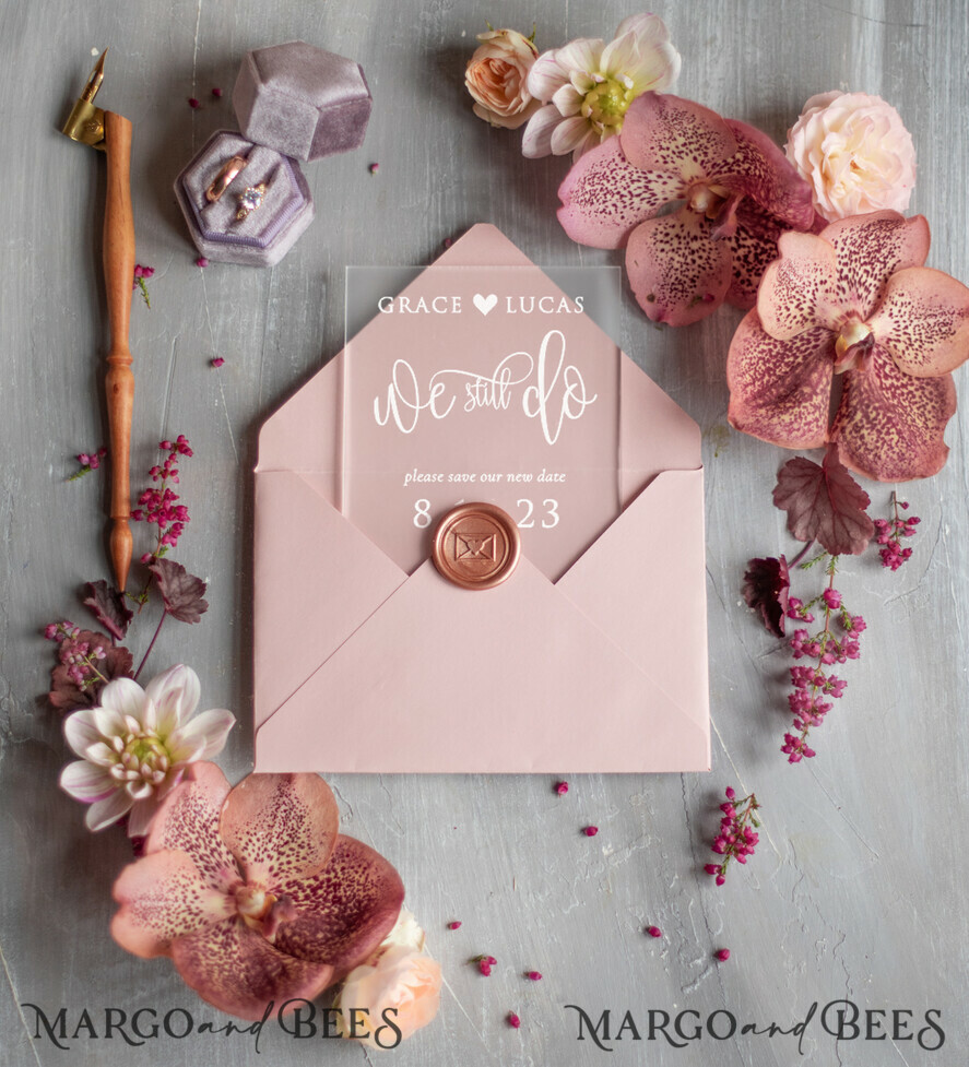 Luxory wedding save the date, Save the date personalized, plexi satin, blush pink envelope, acrylic satin ( 06/stdsatin/STD )