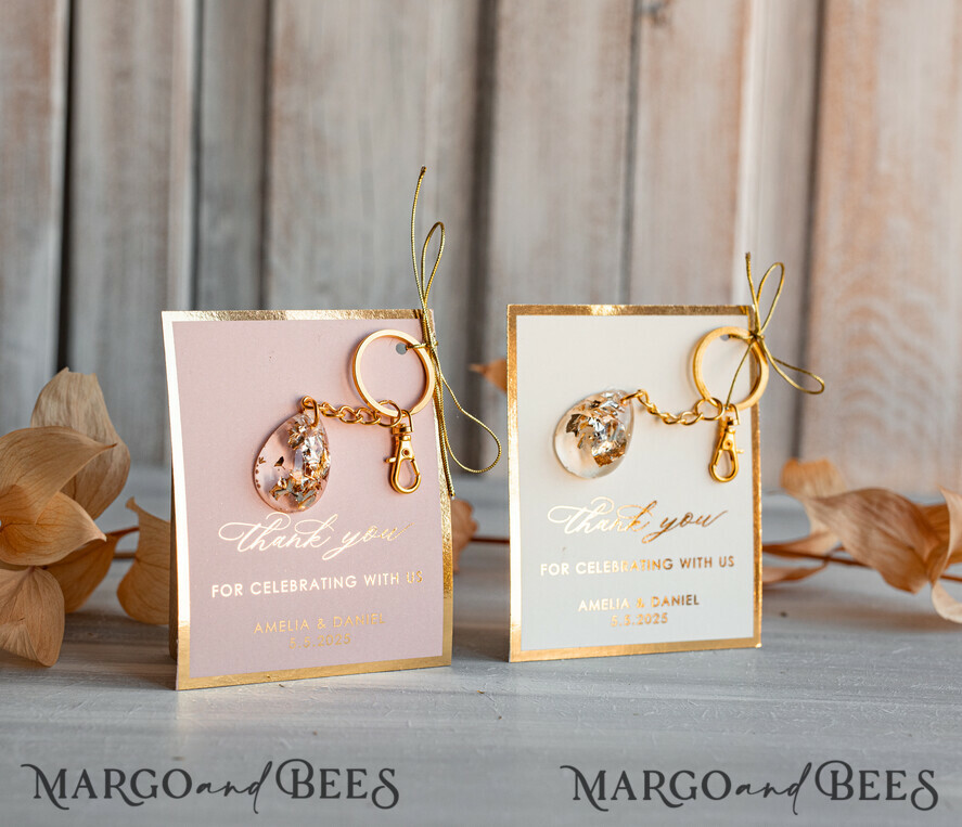 Wedding Favors For Guests in bulk Custom Resin glamour golden Keychain, Golden personalised Thank you gifts Teardrop Keychain with Gold-Plated Stainless Steel Hardware ( 05/gldkch/fgK )