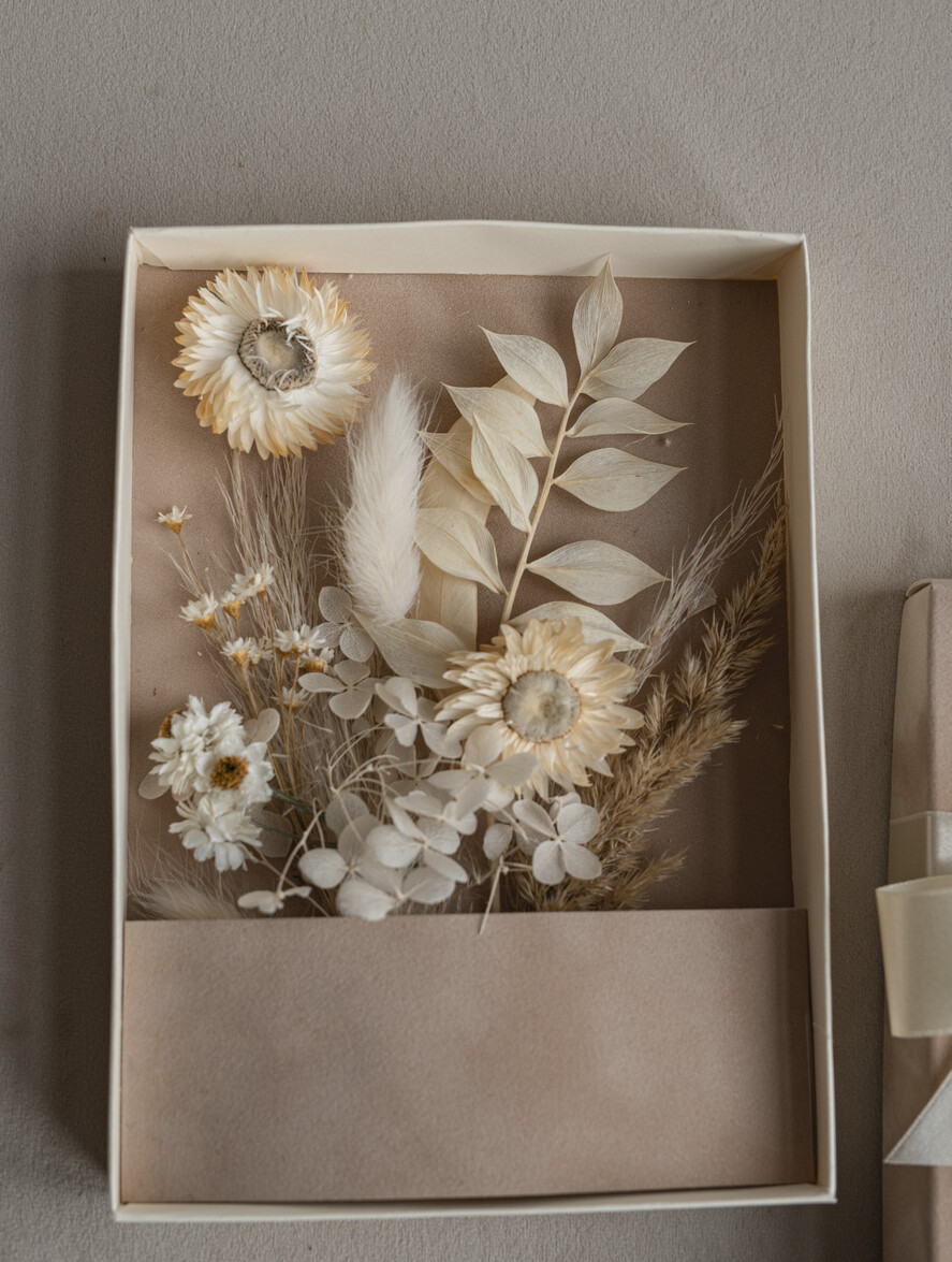 Natural Dried Flowers Wedding Invitations in velvet box, Plexi Glamour Boxed Wedding Invitation Suite Luxury, Romantic Velvet Wedding Cards, Bespoke Golden Invites ( 05/Vdflower/box )